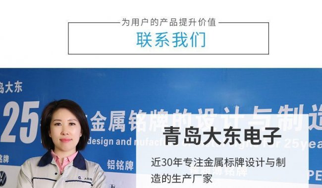 至2020年,青島大東公司已踏實(shí)走過26個(gè)春秋,公司擁有電鍍、蝕刻、氧化、真空鍍、激光、噴漆等各種表面處理產(chǎn)線,可進(jìn)行標(biāo)牌,其他金屬物以及素材多樣的制造加工工程,是集研發(fā)、設(shè)計(jì)、生產(chǎn)、服務(wù)的一站式企業(yè)。